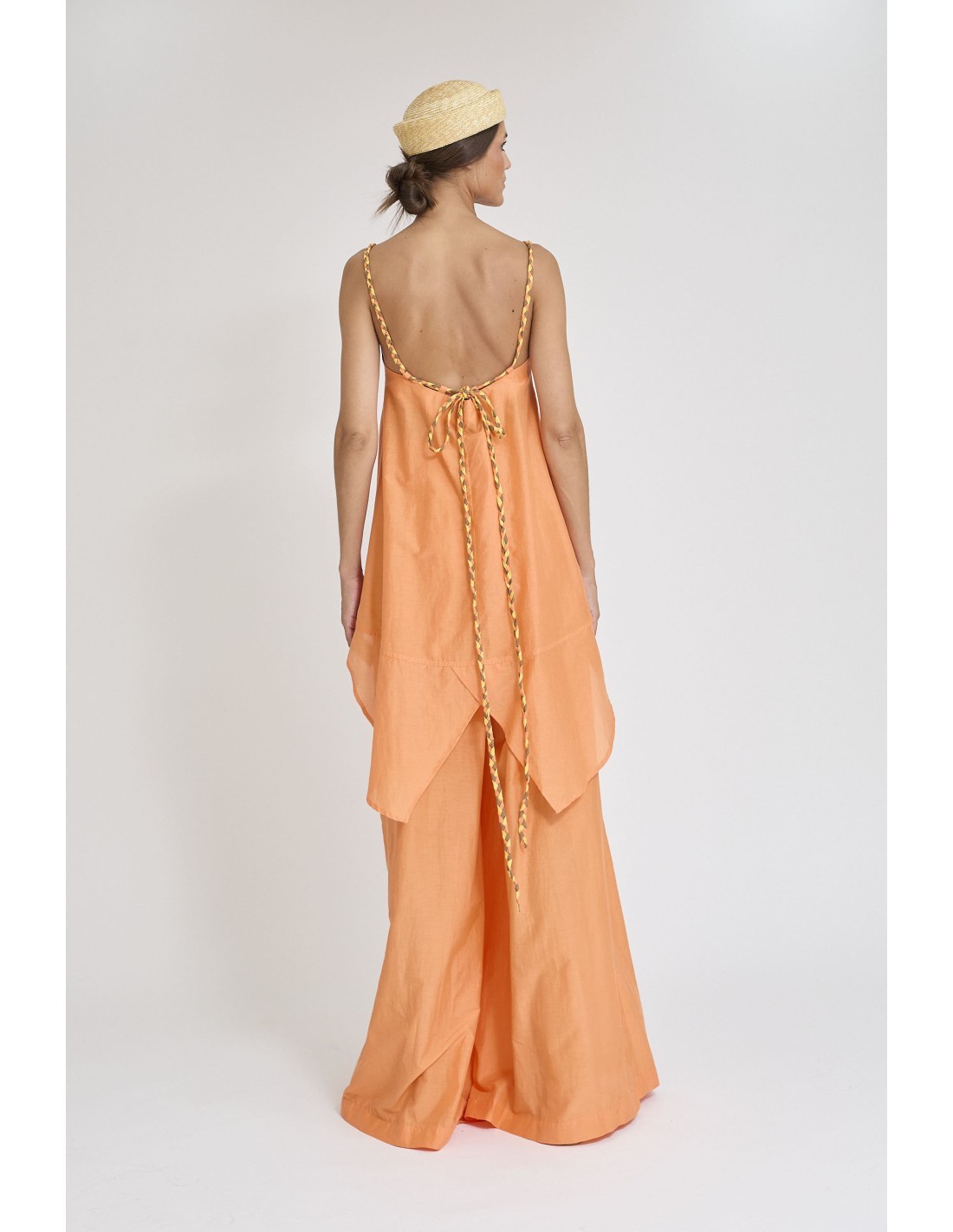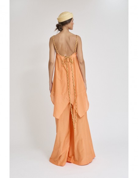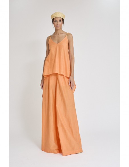 Descubre este pantalón palazzo confeccionado en una suave mezcla de seda y algodón, diseñado para ofrecer una caída fluida y un tacto ligero que aporta máximo confort. Su silueta amplia estiliza la figura y añade movimiento, creando un look elegante y sofisticado.