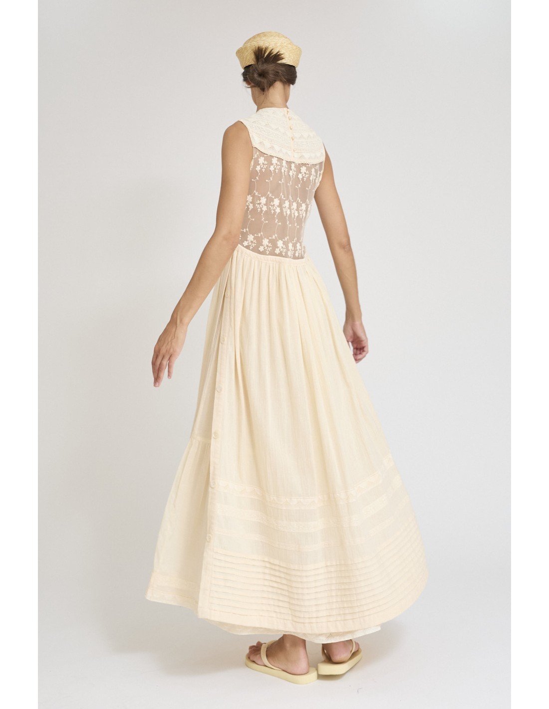 Descubre este vestido de mujer confeccionado en algodón 100%, ideal para el verano gracias a su tejido ligero y transpirable. Su diseño con detalles de puntilla aporta un estilo romántico y elegante, perfecto tanto para el día a día como para ocasiones especiales.