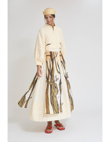 Su silueta amplia y fluida aporta movimiento y un aire femenino, convirtiéndola en una opción perfecta para el verano. Versátil y fácil de combinar, es ideal tanto para outfits casuales como para propuestas más especiales con un toque distintivo.
