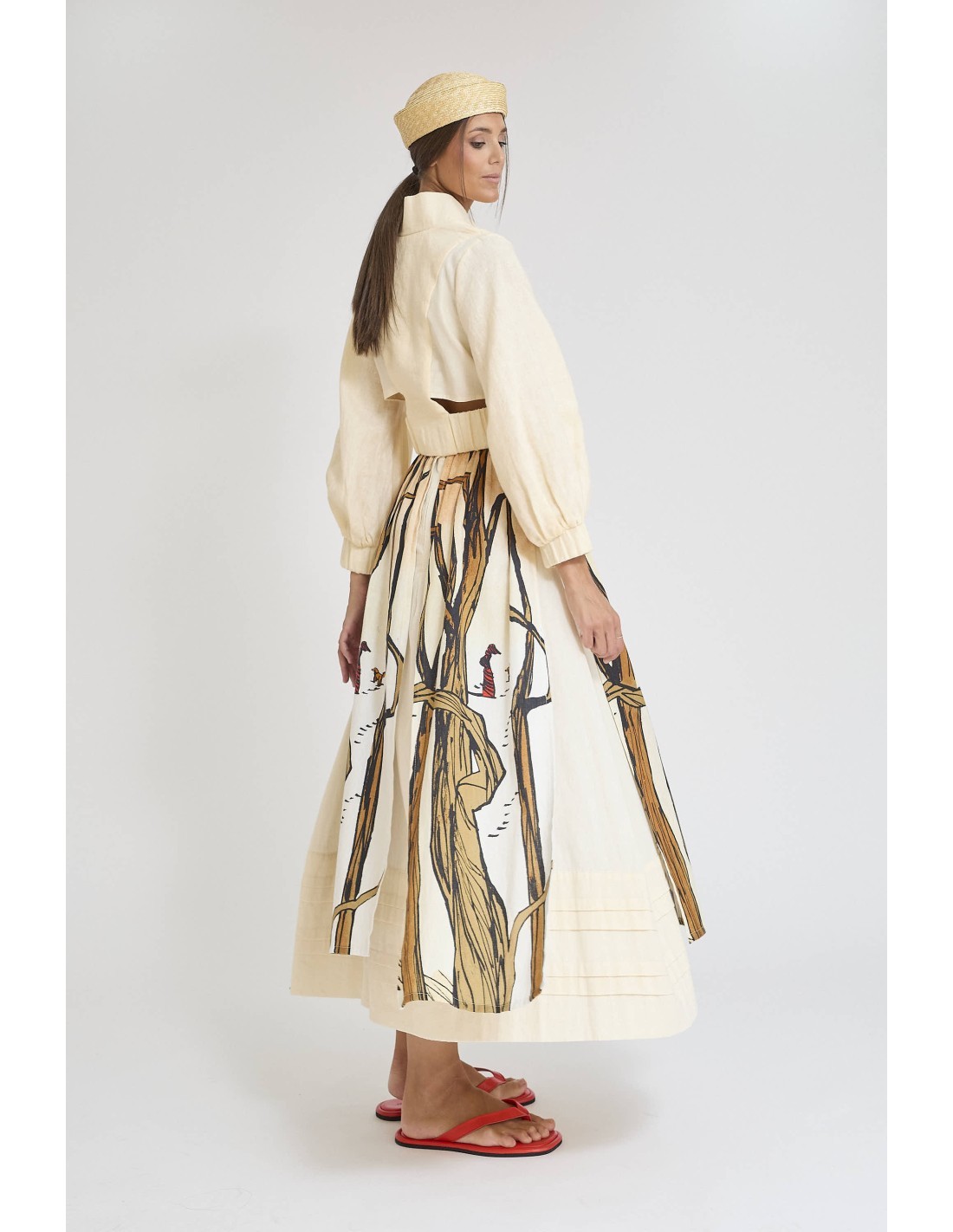 Descubre esta falda de algodón con paneles y estampado de diseño, una prenda ideal para aportar estilo y originalidad a tus looks. Confeccionada en un tejido ligero y transpirable, garantiza frescura y comodidad durante todo el día.