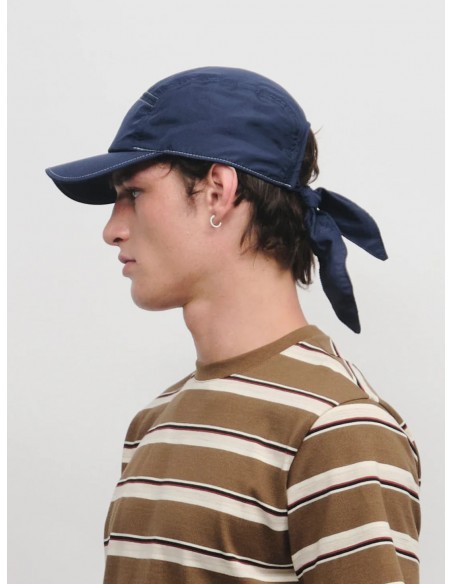 Su cierre con nudo en la parte trasera añade un detalle distintivo y ajustable, aportando un toque casual y funcional. Una pieza versátil que combina diseño y practicidad, perfecta para completar cualquier look con personalidad.
