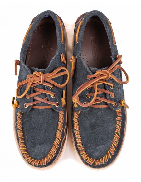Mocasines de exterior diseñados con 4 ojales fueron hechos a mano combinando gamuza sin forro y cuero para un estilo muy aventurero y al aire libre. Cosidos a mano con la mejor artesanía después de la técnica de fabricación de zapatos de los nativos americanos, estos icónicos mocasines para exteriores cuentan con una parte superior cosida a mano con Moc-toe, cordones de cuero crudo y una suela troquelada de EVA ligera para mayor comodidad y absorción de impactos.