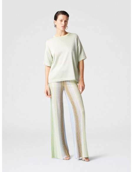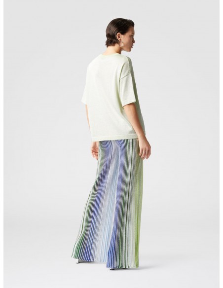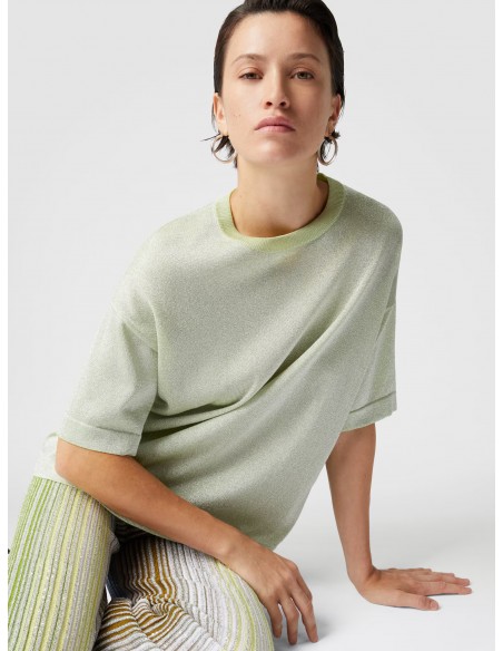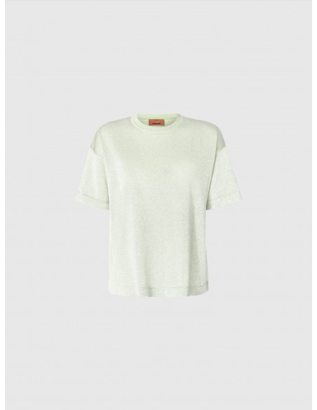Con su silueta oversize y discreto brillo, esta Camiseta de Punto Lamé de Missoni es una obra maestra del lenguaje estético de la maison. Confeccionada en viscosa, la prenda se adorna con filamentos de lamé, lo que le otorga una elegancia sofisticada sin perder el toque relajado y moderno.