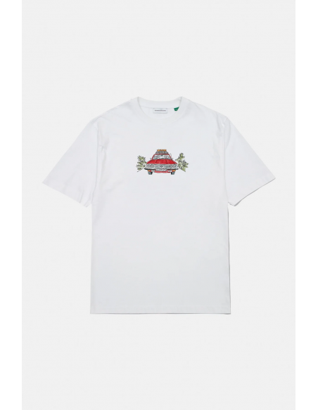 La camiseta Holiday Auto de Edmmond Studios ofrece un estilo relajado y distintivo. Confeccionada con algodón 100% orgánico Compact de 180 gr/m², garantiza ligereza y suavidad. Su diseño incluye una ilustración en la parte delantera y otra en la espalda, que evocan el espíritu veraniego y libre de las vacaciones en carretera. El corte relajado y su ajuste cómodo la convierten en una prenda ideal para el día a día.