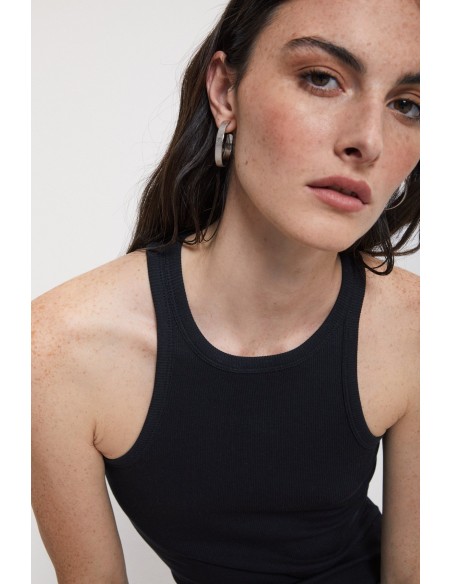 La camiseta de tirantes de Ottod’Ame es un básico imprescindible, confeccionado con una mezcla suave y elástica de 49% algodón, 49% modal y 2% elastano. Su cuello redondo clásico y su silueta ajustada la convierten en una prenda versátil, ideal para llevar sola en los días cálidos o como capa interior bajo chaquetas o camisas. El tejido combina la transpirabilidad del algodón con la suavidad y ligereza del modal, asegurando una sensación de confort durante todo el día. Perfecta para un estilo minimalista, urbano o como parte de tus looks más relajados.
