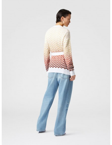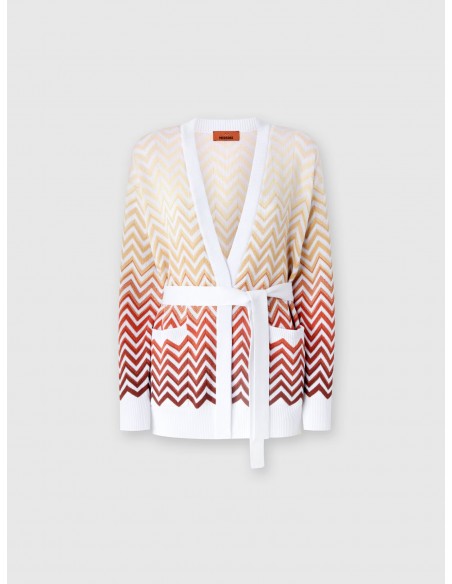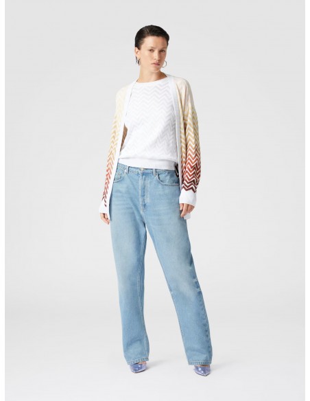 Este Cárdigan Zigzag Degradado de Missoni es una obra maestra de savoir-faire que resalta la excelencia artesanal de la maison. Confeccionado en jacquard de alta calidad, el característico motivo de chevron degradado crea un efecto visual envolvente y sofisticado.