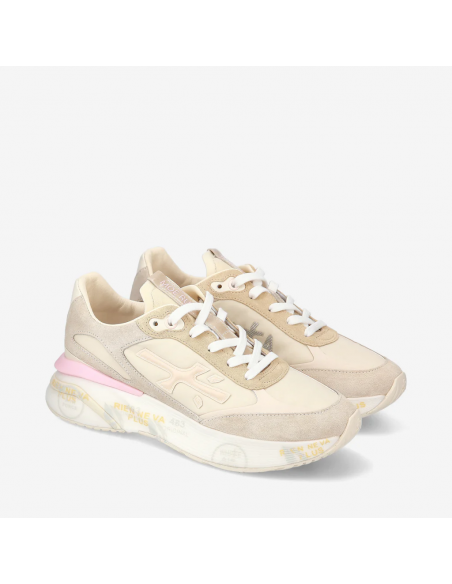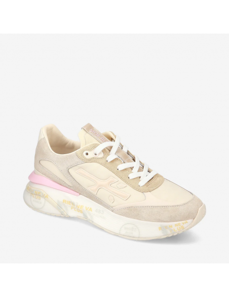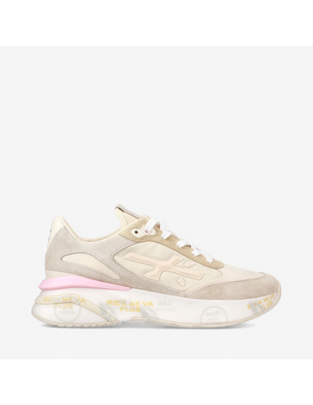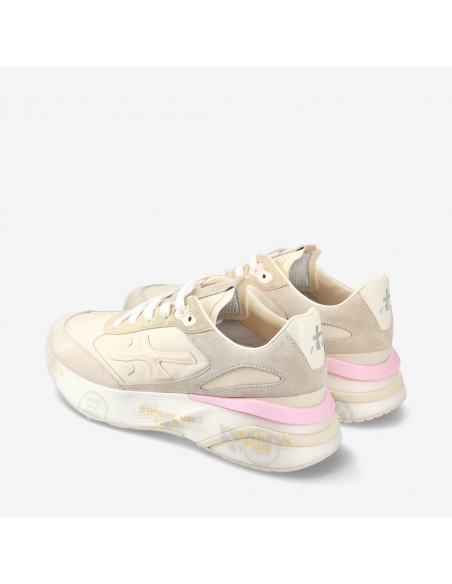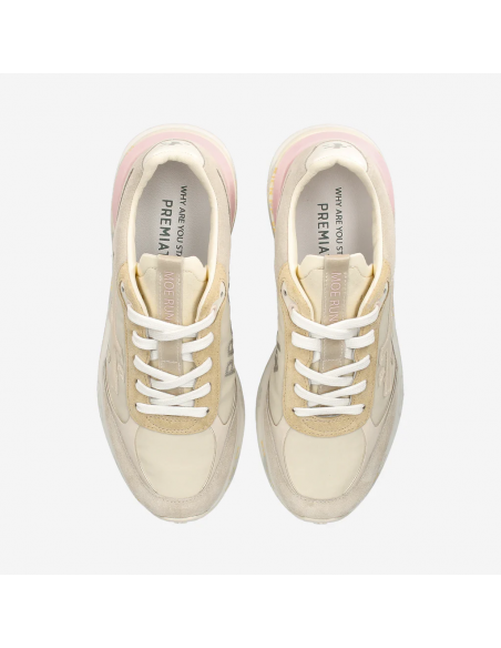 Diseñadas para sorprender, las Moerun se fundamentan en la ligereza del movimiento, la estabilidad y la sensación amortiguadora proporcionada por la innovación de la suela. La nueva silueta está repleta de detalles, que incluyen el logo en el lateral exterior, el nombre "PREMIATA" en el lateral interior y el nombre del modelo en la etiqueta.