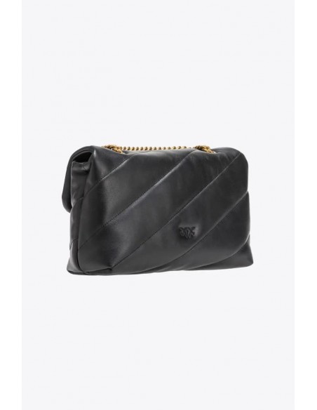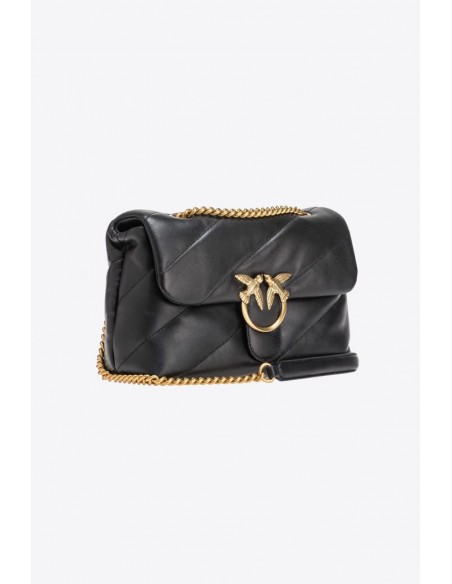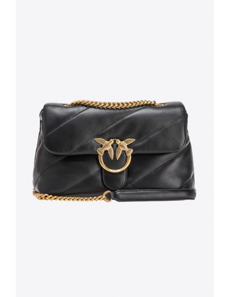 ¡Déjate cautivar por el encanto del bolso Classic Love Bag Puff! Confeccionado en suave napa y adornado con un exquisito maxiacolchado oblicuo, este bolso es una verdadera declaración de estilo. Su emblemática hebilla Love Birds Diamond Cut de metal añade un toque de sofisticación, mientras que el interior, forrado con microfibra efecto ante, ofrece funcionalidad con un panel divisorio con cierre de cremallera y un práctico bolsillo interno. La correa, que combina una clásica cadena redonda de metal con una hombrera de napa, garantiza comodidad y estilo en cada paso.