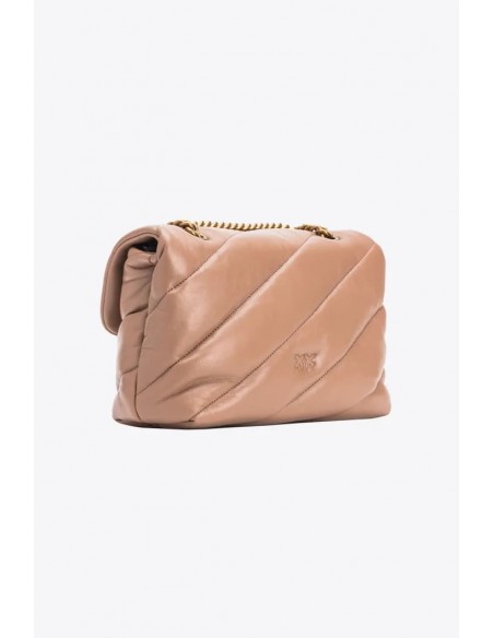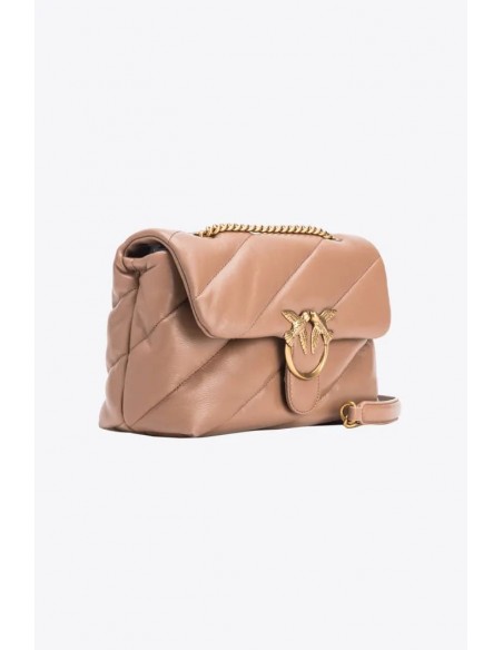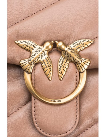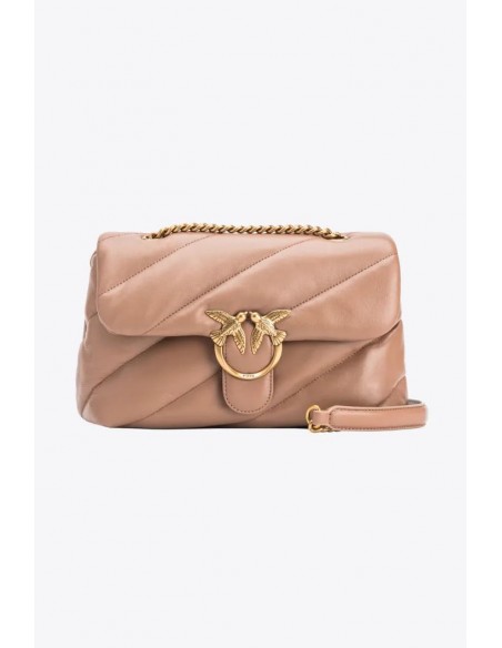 ¡Déjate cautivar por el encanto del bolso Classic Love Bag Puff! Confeccionado en suave napa y adornado con un exquisito maxiacolchado oblicuo, este bolso es una verdadera declaración de estilo. Su emblemática hebilla Love Birds Diamond Cut de metal añade un toque de sofisticación, mientras que el interior, forrado con microfibra efecto ante, ofrece funcionalidad con un panel divisorio con cierre de cremallera y un práctico bolsillo interno. La correa, que combina una clásica cadena redonda de metal con una hombrera de napa, garantiza comodidad y estilo en cada paso.