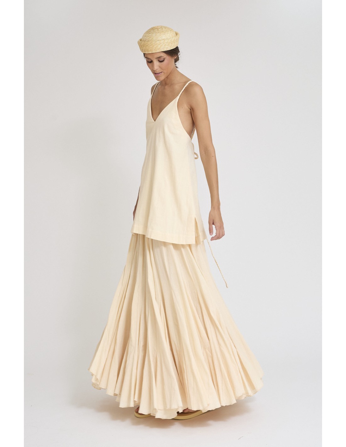 Descubre esta falda confeccionada en algodón 100%, perfecta para quienes buscan comodidad y estilo en su día a día. Su tejido natural y transpirable ofrece una textura suave y agradable, ideal para los meses más cálidos.