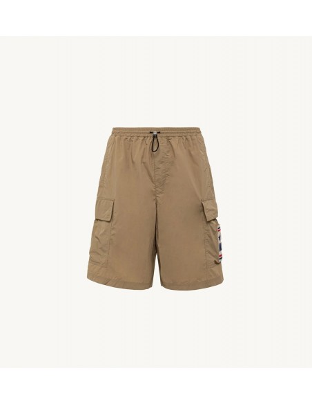 Estos shorts de nylon con cordón ajustable en la cintura son perfectos para un estilo relajado y cómodo. Cuentan con un cordón metálico con el logo, una cintura elástica, y bolsillos laterales tipo cargo con maxi parche. No tienen forro, lo que añade a su ajuste relajado y casual.