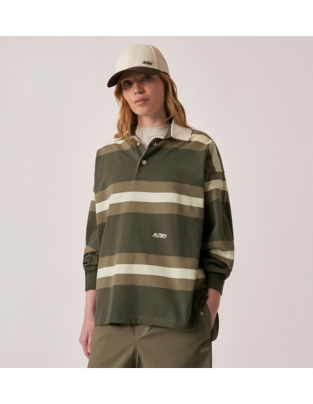 Inspirado en la tradición deportiva, el polo de rugby de rayas de Autry combina funcionalidad, comodidad y estilo icónico. Diseñado en un corte oversize, esta prenda unisex está confeccionada en 100 % algodón de alta calidad, ideal para un look casual con personalidad.