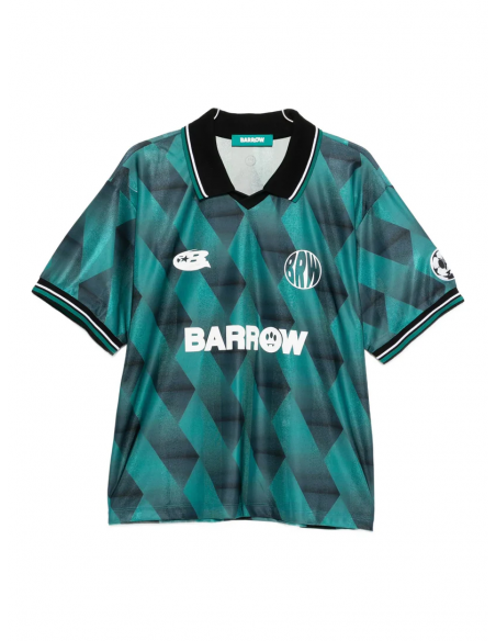 Presenta un cuello clásico acanalado y un print gráfico en la parte frontal, junto a un parche con el logo Barrow en la manga, sello inconfundible de la firma. Su corte moderno y estructura limpia aportan un equilibrio entre funcionalidad y estilo contemporáneo.