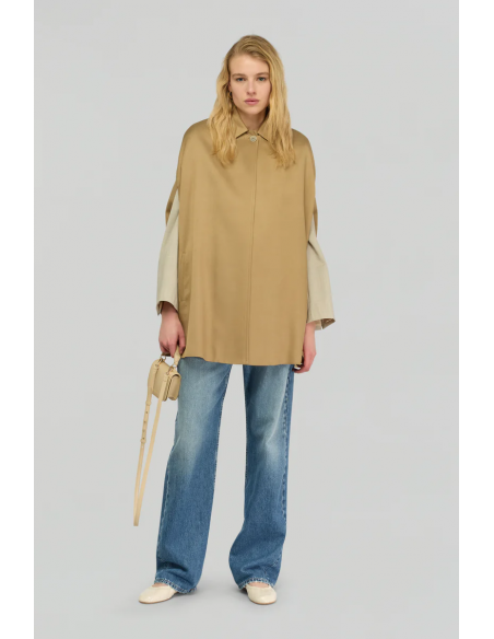 La capa Davina de Semicouture es una prenda sofisticada y vanguardista que redefine el concepto de abrigo ligero. Confeccionada en una mezcla de viscosa técnica con estructura diagonal, ofrece una caída elegante y una textura refinada. Su diseño presenta cuello clásico, cierre frontal abotonado y dos bolsillos con vivo que aportan funcionalidad sin romper la línea minimalista. El corte oversize permite superponerla fácilmente sobre otras prendas, ideal para entretiempo o para looks urbanos con un aire contemporáneo.