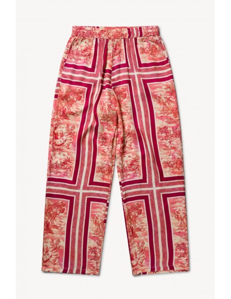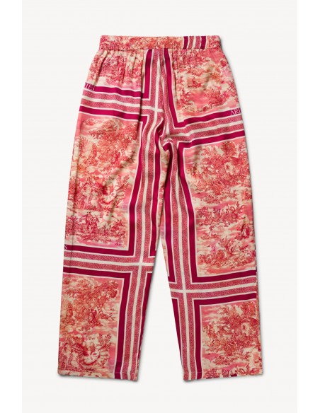Los pantalones Slacker, diseñados para un ajuste relajado, cuentan con una pierna recta y una cintura ajustable con cordón. Destacan por su estampado integral de Aries Scarf con un elegante patrón de toile de Jouy, ofreciendo una combinación perfecta de comodidad y estilo distintivo.
