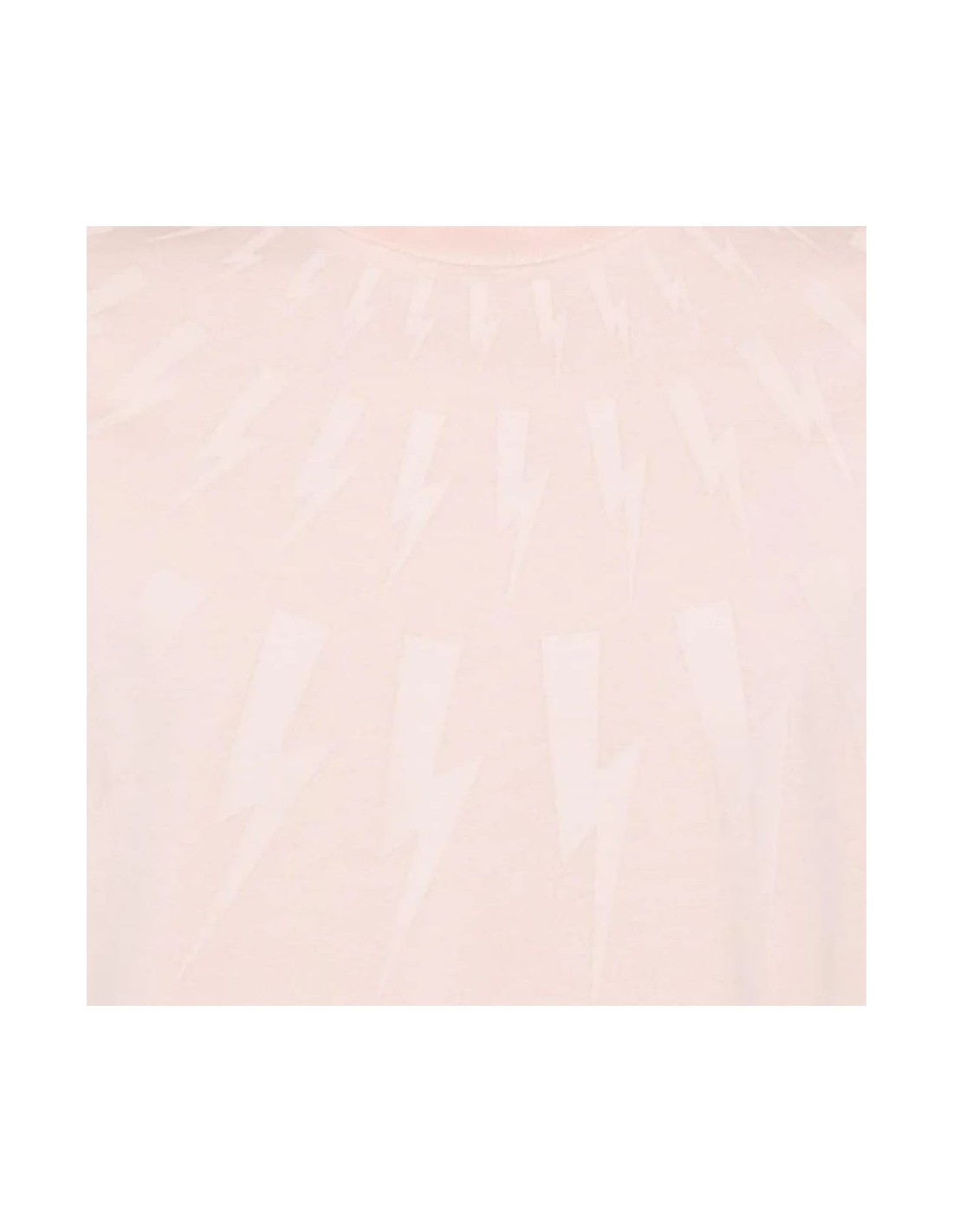 Esta camiseta presenta un diseño minimalista y moderno. Está confeccionada en un material suave y cómodo. La característica más destacada es un patrón gráfico en forma de rayos que se despliega desde el cuello hacia el pecho, creando un efecto visual interesante y dinámico característico de la marca Neil Barret.