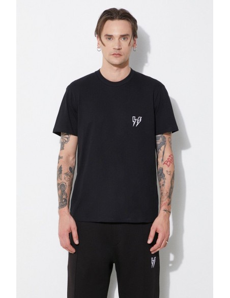 Esta camiseta es un ejemplo perfecto del estilo sofisticado y minimalista característico de Neil Barrett. Confeccionada en un tejido de algodón premium, esta prenda ofrece una comodidad excepcional y una sensación de suavidad al contacto con la piel. El diseño de la camiseta es de color negro sólido, con un corte recto que proporciona un ajuste relajado y moderno.