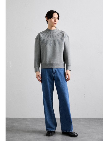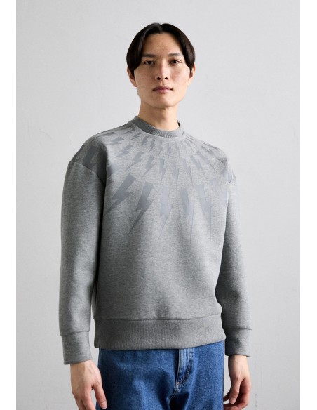 Un elegante gráfico de rayos en el lado izquierdo del pecho aporta un toque distintivo y sutil. Sin capucha y con un cuello redondo clásico, esta sudadera es la elección ideal para quienes buscan una prenda versátil que complemente cualquier conjunto, manteniendo siempre un aspecto elegante y moderno.