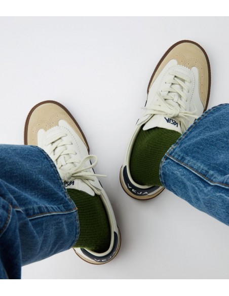 Presentación de las exclusivas zapatillas VOLLEY SUEDE de la prestigiosa marca francesa VEJA. Estas zapatillas, de corte bajo, presentan una silueta simple y limpia que se integra de forma armoniosa con el llamativo logotipo en sus laterales. Elaboradas en suave gamuza, no solo destacan por su estilo sofisticado, sino también por su excepcional comodidad. Su diseño resalta por un predominante tono azul claro, complementado por detalles contrastantes en color rojo.