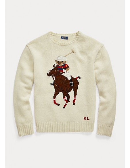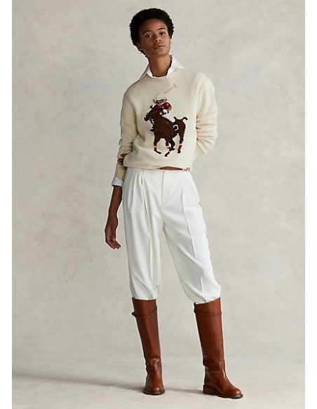 Este jersey se ha confeccionado con una lujosa mezcla de hilos, entre los que se incluyen la lana y el algodón, presenta un bordado inspirado en el punto de cruz en la parte delantera que muestra a nuestra icónica mascota disfrutando de un animado juego de polo.
