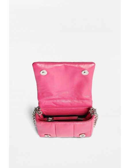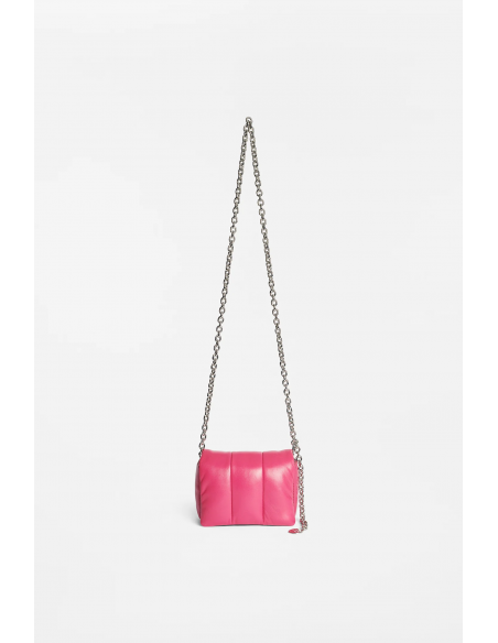 Lleva la última moda en tu hombro con este bolso de mano plegable. Está confeccionado con piel de cordero flexible y tiene una delicada correa de cadena adornada con un dije redondo con el logotipo de la marca. Es un bolso ideal con un espíritu joven que no deja indiferente a nadie y gracias a su sencillez es capaz de completar cualquier look con sus llamativos colores. Cuenta con una cadena para llevar en modo bandolera, cierre con dos pulsadores y un bolsillo interior central.