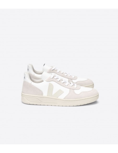 El modelo V-10 esta hecho de materiales ecológicos que apoyan a una economía sostenible que representa 10 años de diseño fiel de la marca Veja. Son las sneakers ideales para cualquier look gracias a su sencillez y buen hacer lo que las convierte en la opción ideal para combinar prendas creando un look llamativo sin perder un ápice de comodidad.