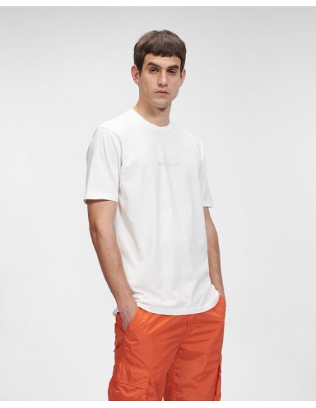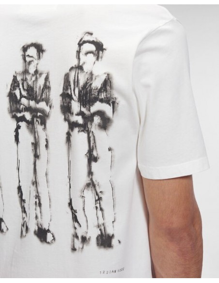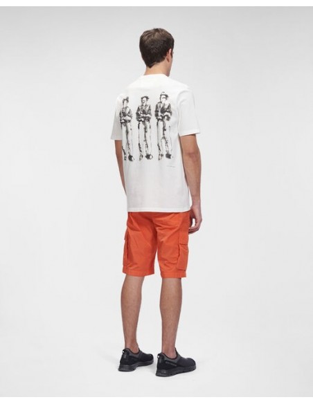 Camiseta de cuello redondo con un detalle del marinero británico estampado en la parte posterior y un logotipo serigrafiado y lavado a mano en la parte delantera. La prenda está elaborada en un tejido de punto de algodón fino 24/1 de gran suavidad y transpirabilidad, y está rematada con una técnica de teñido en prenda que confiere un acabado tonal y variado.