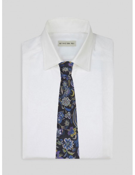 La seda suave y lujosa garantiza una apariencia y sensación de calidad, mientras que el estampado Paisley floral añade un toque de estilo y personalidad. Esta corbata es perfecta para complementar trajes formales o para añadir un toque de elegancia a conjuntos más casuales.
