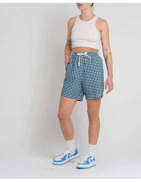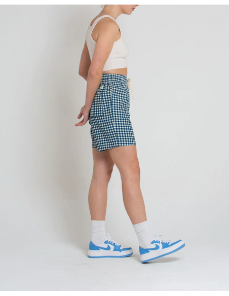 Los pantalones cortos con estampado de cuadros son una opción fresca y moderna para el verano. Con su diseño versátil, cuentan con bolsillos prácticos y una cintura ajustable con una cuerda, lo que te permite personalizar el ajuste según tu preferencia.