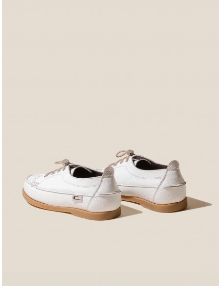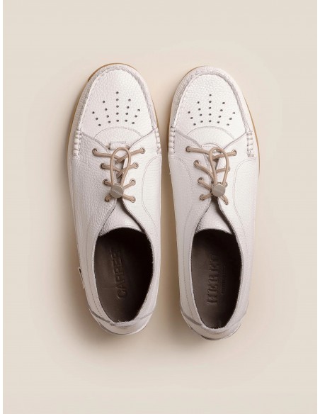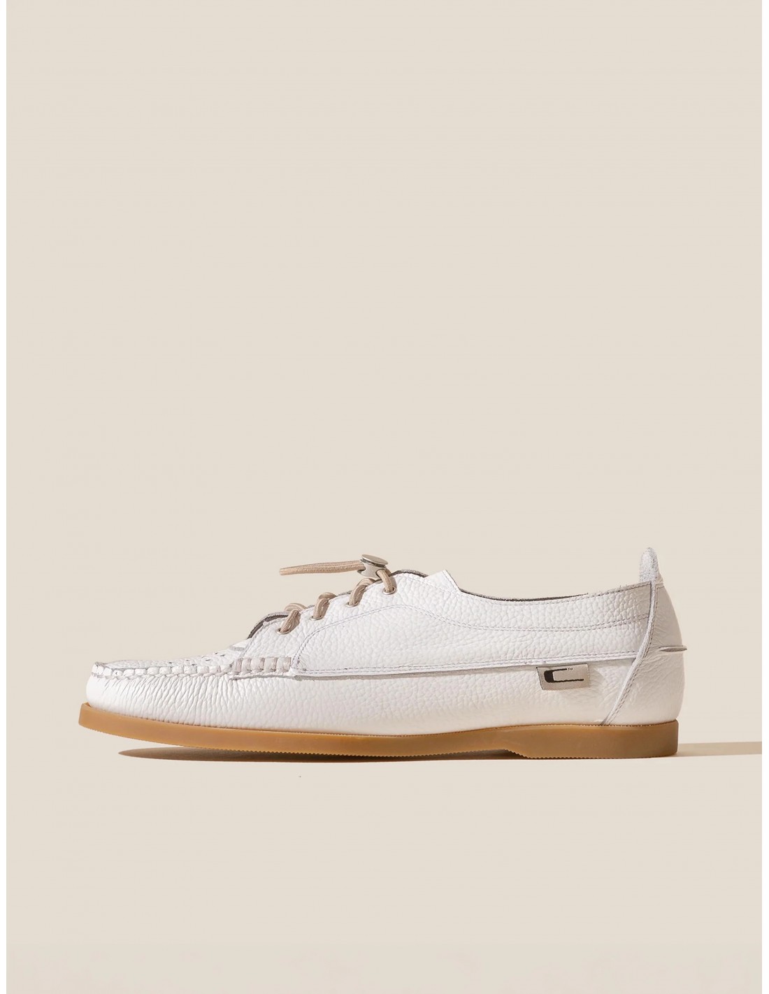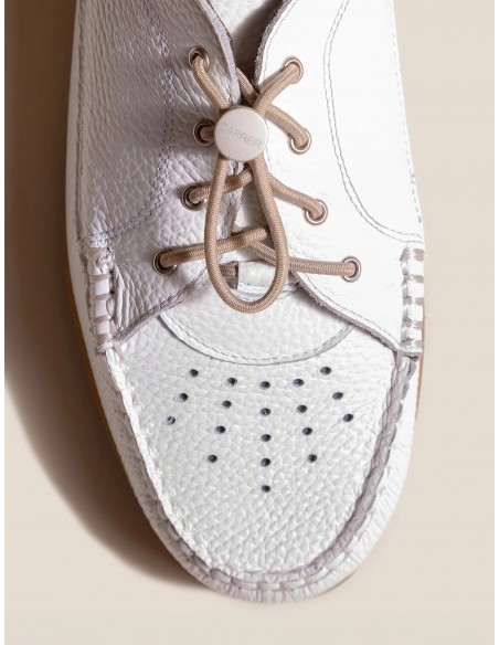 Descubre este zapato de hombre con cordones elásticos y suela de goma, confeccionado en piel de becerro granulada de alta calidad. Elaborado a mano mediante la tradicional construcción de mocasín, un método artesanal icónico desde los años 70 que garantiza flexibilidad, confort y durabilidad.
