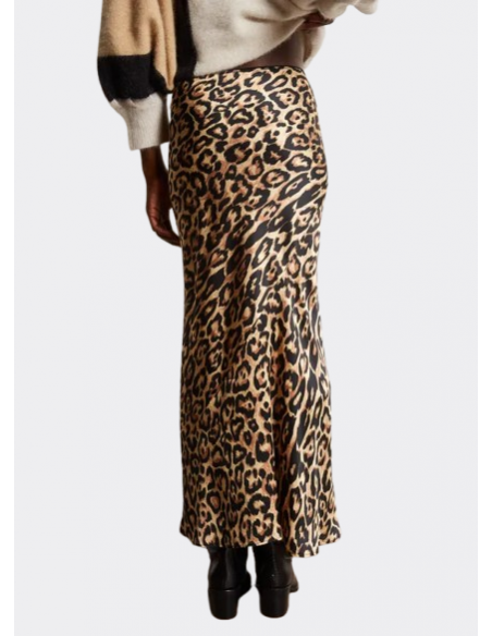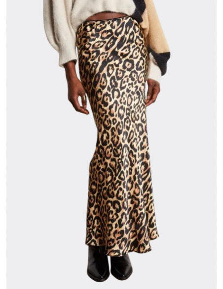 Falda larga recta de seda, esta pieza destaca por su corte recto y elegante, con una cintura elástica que garantiza comodidad. El estampado de leopardo añade un toque atrevido y moderno a la prenda, mientras que su longitud total de 95 cm brinda una apariencia sofisticada y fluida. Ideal para ocasiones especiales, está confeccionada en seda de alta calidad, lo que le confiere un acabado lujoso y suave al tacto.