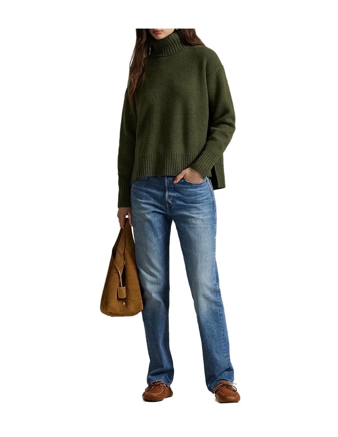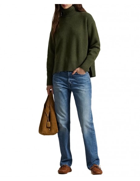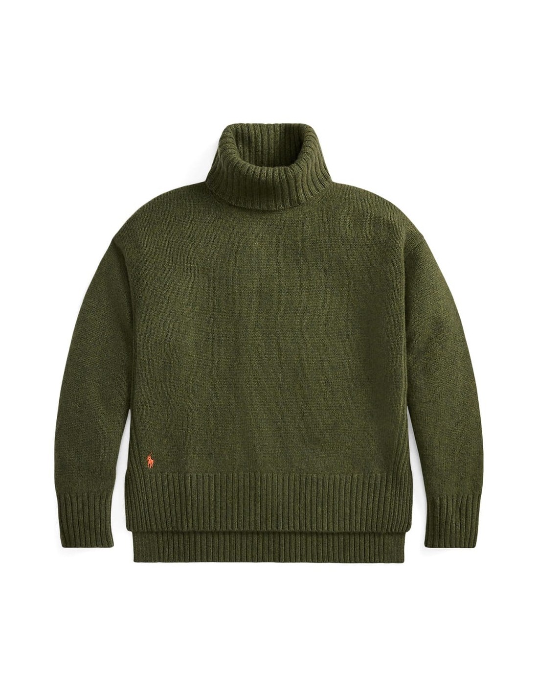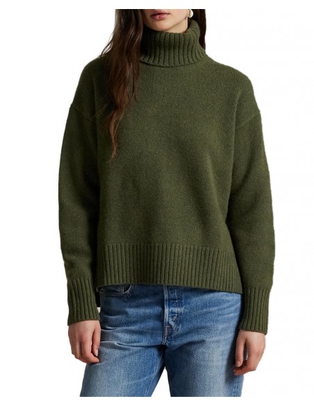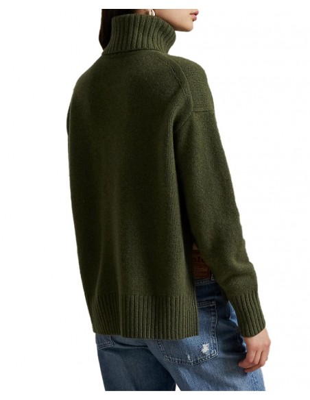 Jersey de color verde con un corte holgado que garantiza comodidad y libertad de movimiento. Confeccionado en un tejido canalé que aporta textura y estilo, incorpora un cuello tipo vuelta que añade un toque clásico y abrigado. El diseño se completa con un logotipo bordado y pequeñas aberturas en las costuras laterales, que ofrecen mayor confort y un look más fluido. Fabricado en Italia, destaca por su calidad y acabado impecable.
