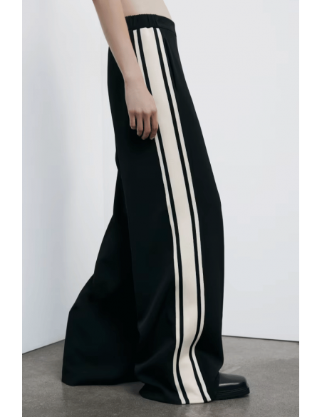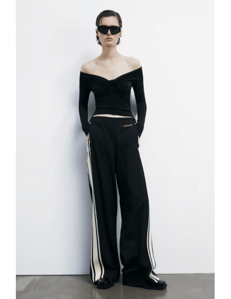 El Pantalón Jogger Racing Ancho de Patrizia Pepe combina el espíritu deportivo con la sofisticación urbana. Confeccionado en tejido de poliéster fluido, presenta un corte palazzo y talle normal, ideales para un look relajado pero elegante. Las bandas laterales color-block aportan dinamismo y estilo, mientras que el logotipo bordado en contraste en el delantero refuerza la identidad de la cápsula Racing, inspirada en el mundo biker. Perfecto para combinar con sneakers o tacones, según la ocasión.