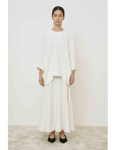 Blusa de manga larga con escote redondo, diseñada para ofrecer comodidad y estilo en cualquier ocasión. Presenta puños y bajo contorneados que aportan un acabado elegante y una caída favorecedora. Su tejido suave y ligero la convierte en una prenda versátil, perfecta para combinar tanto en looks casuales como más formales.