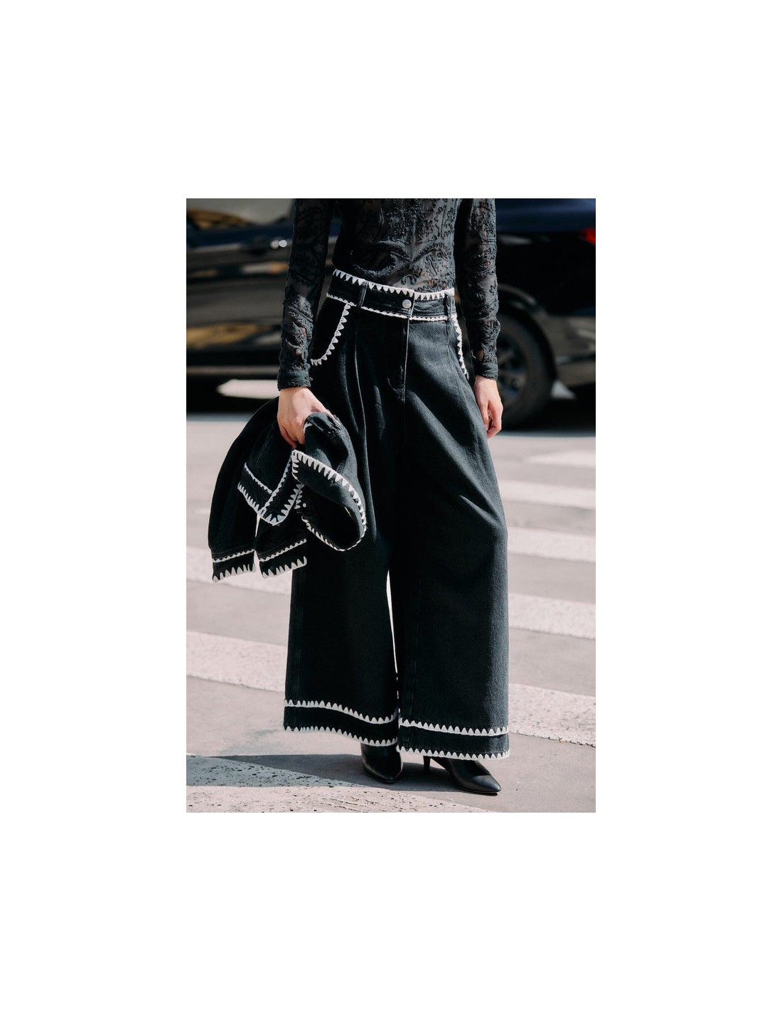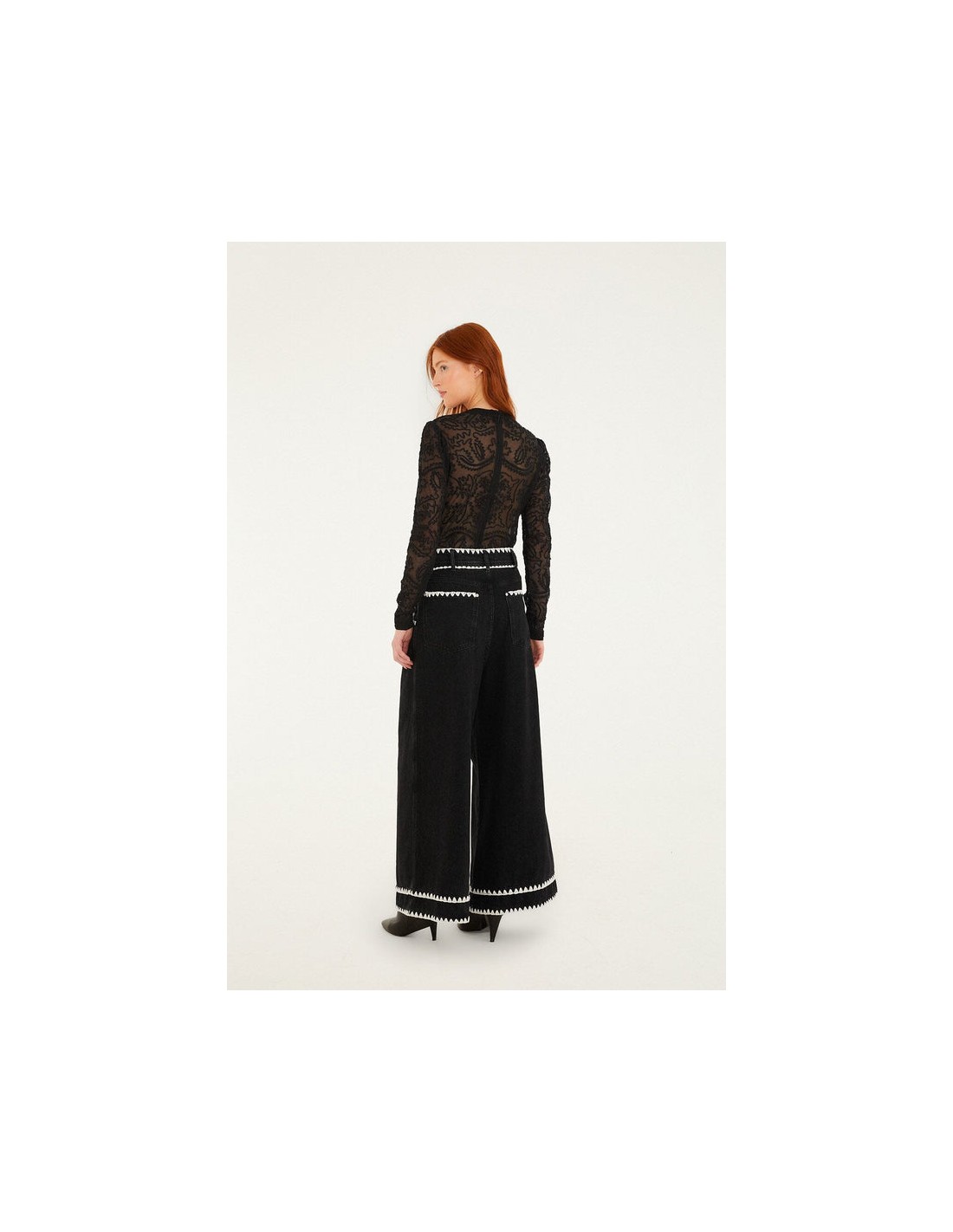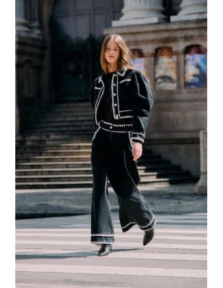 Descubre los pantalones vaqueros wide-leg con bordado crochet en color negro de FARM Rio, una prenda que combina a la perfección estilo bohemio, comodidad y diseño artesanal. Confeccionados en denim negro de alta calidad, destacan por sus delicados detalles de bordado crochet a lo largo de las piernas, que aportan un toque único y sofisticado.