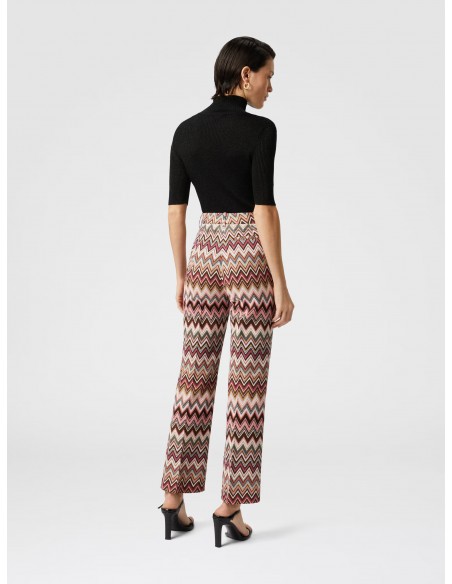 El Pantalón Clásico Zigzag de Missoni redefine la perfección sartorial con su característico estampado en zigzag, que se desliza con fluidez sobre el tejido, aportando textura y profundidad al diseño.