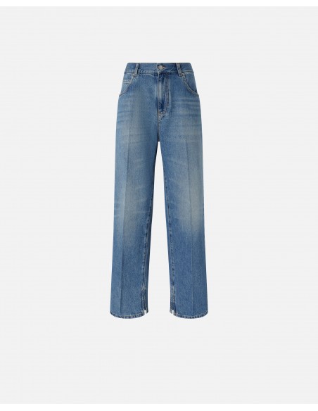 Este modelo de cinco bolsillos se distingue por su pernera recta y ligeramente ancha, realzada con un pliegue central marcado y pequeñas aberturas laterales en el bajo, inspiradas en el tailoring clásico. La cintura de tiro caído refuerza el aire desenfadado y moderno de estos jeans, haciéndolos ideales tanto para la oficina como para salidas informales.