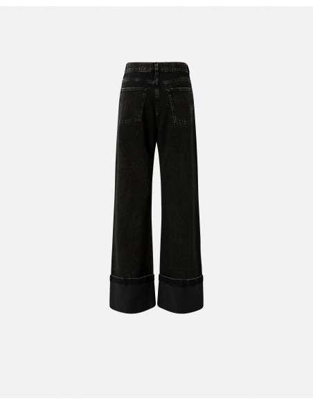 Los Vaqueros Wide Leg Negros de Pinko combinan comodidad y estilo contemporáneo. Con pernera recta y amplia, este modelo de corte wide leg presenta un dobladillo fijo y un ajuste ligeramente holgado respecto a la talla habitual, ofreciendo un look relajado y elegante. Confeccionados en denim negro de algodón y lyocell, aportan un tacto fluido y suave, mientras que los lavados especiales consiguen el tono final perfecto. La prenda incluye cinco bolsillos, trabillas para cinturón, cierre frontal con botón y cremallera oculta, y trabilla extraíble con logotipo Love Birds, un toque distintivo de Pinko. Combínalos con la cintura caída y un estilo masculino o con prendas femeninas para jugar con contrastes y lograr un look versátil y actual.