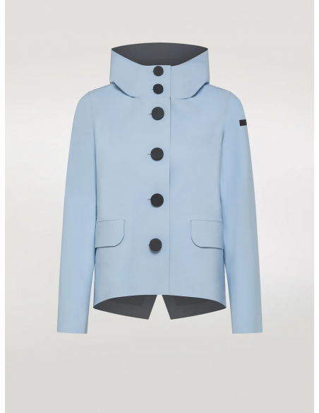 La Chaqueta con Capucha Techno Color presenta un diseño contemporáneo y minimalista con un frente corto y una parte trasera ligeramente más larga y redondeada. La capucha envuelve suavemente el rostro, añadiendo un toque de elegancia refinada. Los bolsillos con solapa redondeada y los botones maxi de tacto suave son un destacado distintivo de estilo. Fabricada en Stratofabric#3 ligero y transpirable, la prenda cuenta con un exterior exclusivo en SURFLEX® con un acabado súper mate. Con su ajuste cómodo, esta chaqueta es una pieza imprescindible para la entretiempo.