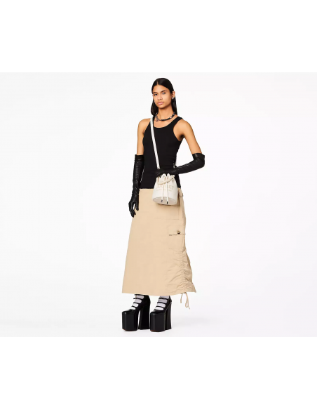 Este bolso saco con el logotipo de la marca repujado es una codiciada incorporación a nuestros artículos de piel. El asa de cuerda texturizada y el cordón de ajuste incluyen piezas metálicas. Su estructura, que cuenta con una bandolera para poder llevar las manos libres, también permite que se sostenga en pie sin sujetarlo al mismo tiempo que todas sus pertenencias se mantienen en su sitio.