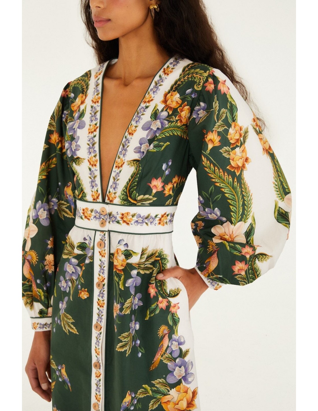 Descubre el vestido maxi Green Nature V Neck Buttoned de FARM Rio, una prenda vibrante y femenina que captura la esencia de la naturaleza con un diseño lleno de color y movimiento. Su estampado en tonos verdes, inspirado en paisajes naturales, aporta frescura y personalidad a cualquier look.
