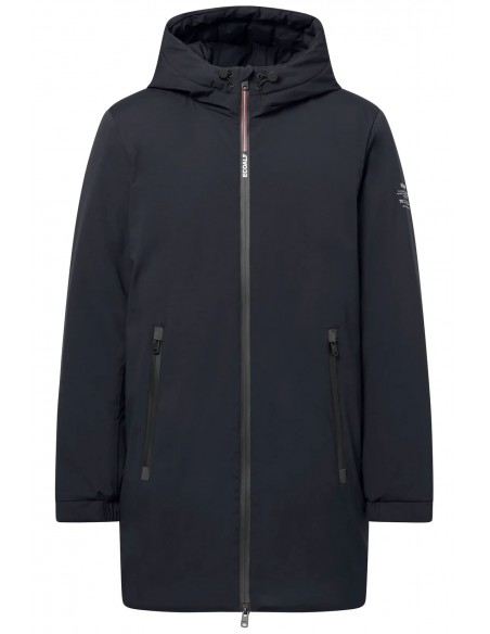 Con un fit regular y un largo 3/4, el abrigo ofrece una cobertura ideal para los días más fríos y lluviosos. Incluye un cierre frontal con cremallera, bolsillos laterales con cremallera, y un bolsillo interior con cremallera para mayor seguridad y practicidad. La capucha ajustable con cordones y topes añade protección adicional contra la lluvia. Además, el abrigo está libre de PFCs y es completamente vegano.
