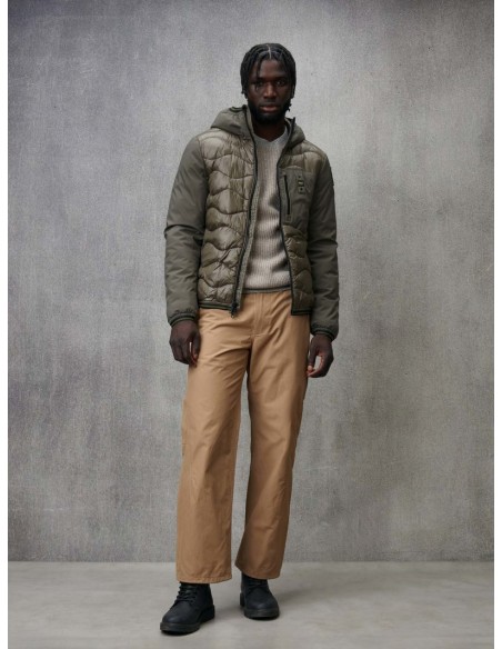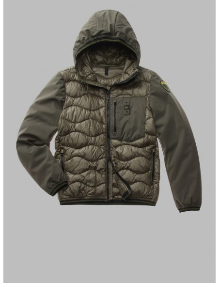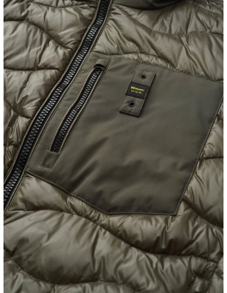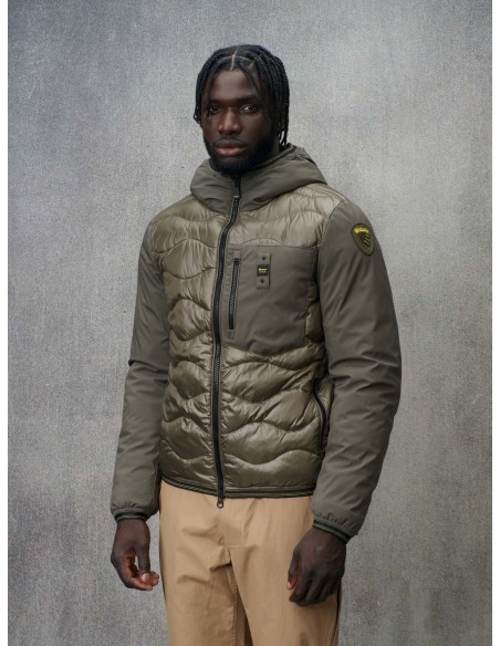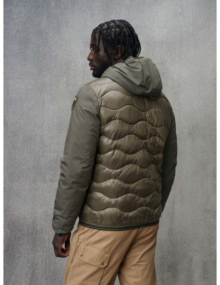 Este plumífero monocromático combina estilo y funcionalidad en una prenda repelente al agua ideal para los días fríos y lluviosos. Confeccionado en un diseño que mezcla neopreno liso en las mangas y nailon brillante acolchado en ondas en el cuerpo, garantiza una protección térmica superior gracias a su relleno mixto de 50 % pluma y 50 % poliéster. La capucha fija, con un elegante detalle de costuras en ondas, y el forro en nailon brillante añaden un toque sofisticado.