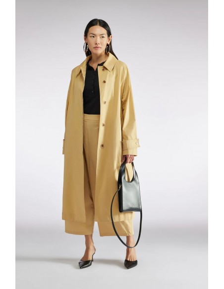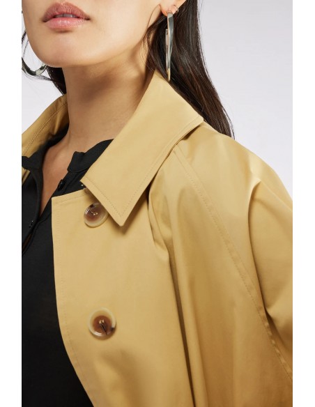 Este abrigo clásico en tono camel es una pieza esencial para cualquier fondo de armario. Confeccionado en un tejido ligero pero estructurado, ofrece la combinación perfecta entre estilo y funcionalidad.