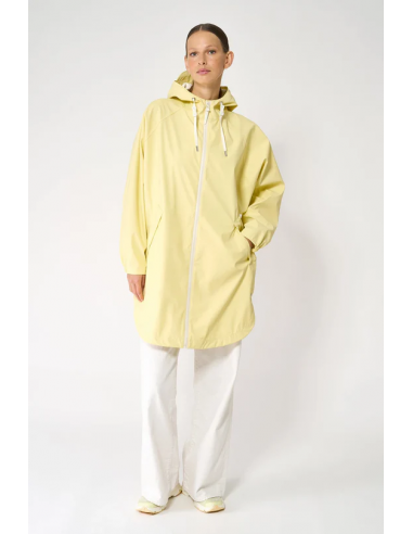 Su corte oversize proporciona comodidad y libertad de movimiento, mientras que los botones laterales a presión permiten ajustar el volumen y jugar con la silueta. Incorpora una capucha con visera y cordón, cuello alto, cremallera delantera impermeable, puños elásticos y bolsillos ribeteados. Las aberturas en las sisas mejoran la ventilación sin comprometer la protección.
