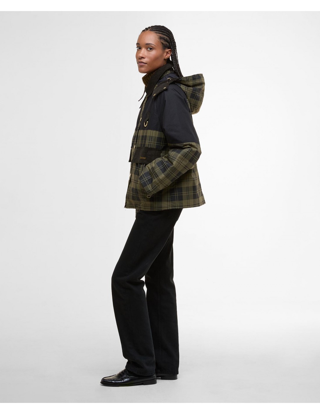La Elaine Showerproof Jacket de Barbour reinterpreta el icónico Spey Jacket con un enfoque moderno y funcional. Su diseño combina paneles de tartán, pana y tejido liso, creando un estilo distintivo y clásico a la vez.