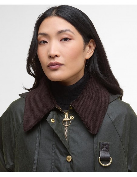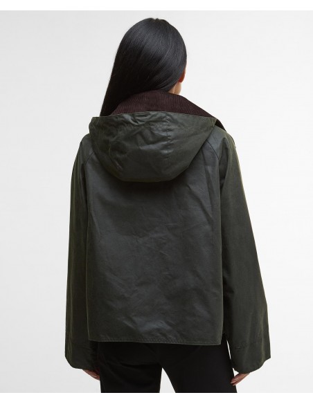El cuello de pana sobredimensionado y el corte cuidado proporcionan una silueta moderna y estructurada, perfecta para un look urbano o de campo con estilo. Fabricada en algodón encerado 100%, esta cazadora ofrece resistencia al agua y durabilidad, mientras que los detalles interiores en mezcla de poliéster y algodón aseguran confort y facilidad de uso.
