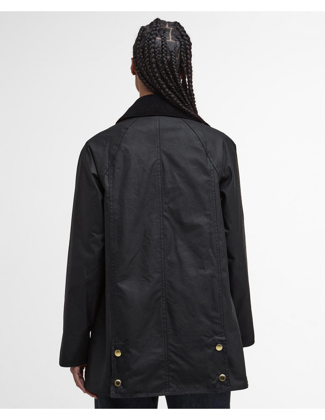 Mantiene la esencia del estilo británico clásico: resistente al viento y a la lluvia ligera, con una estructura que conserva su forma y envejece con carácter. El cuello de pana sobredimensionado aporta textura y contraste, mientras que los botones dorados con grabado del logo añaden un toque de refinamiento y luminosidad.