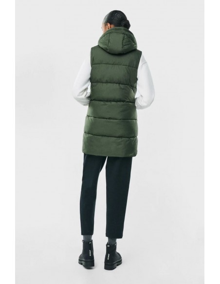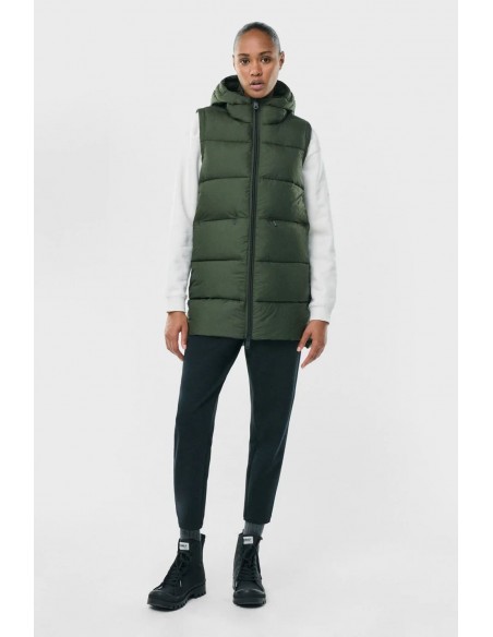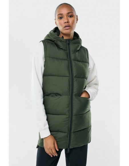 Esta es la versión de chaleco del ideal abrigo Marangu, cuenta con las mismas características. Esta confeccionado con un relleno vegano, 100% Poliéster reciclado que el uso de pluma y plumón. Cuenta con bolsillos laterales con cremallera y cierre con cremallera. Lleva capucha ajustable que junto al tejido repelente al agua se convierte en la elección perfecta para los fríos y lluviosos días de invierno.