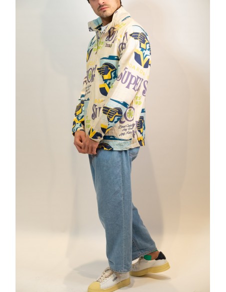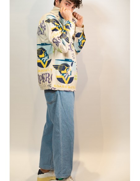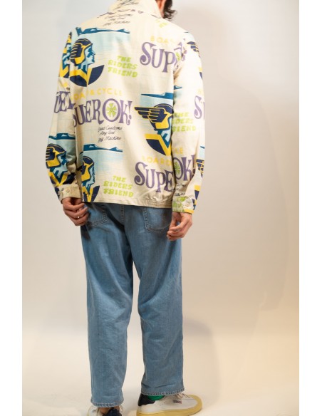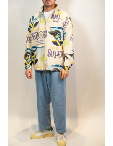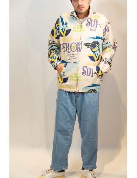 Esta cazadora destaca sobre las demás por la tipografía y la combinación de colores claramente roba el espectáculo, evocando imágenes de fiestas en la playa, películas en autocines y días de playa. La fabricación es una mezcla de algodón y cáñamo (que tiene un impacto ambiental más leve), y el ajuste, bueno, es "la guinda del pastel", como diría Bear.
